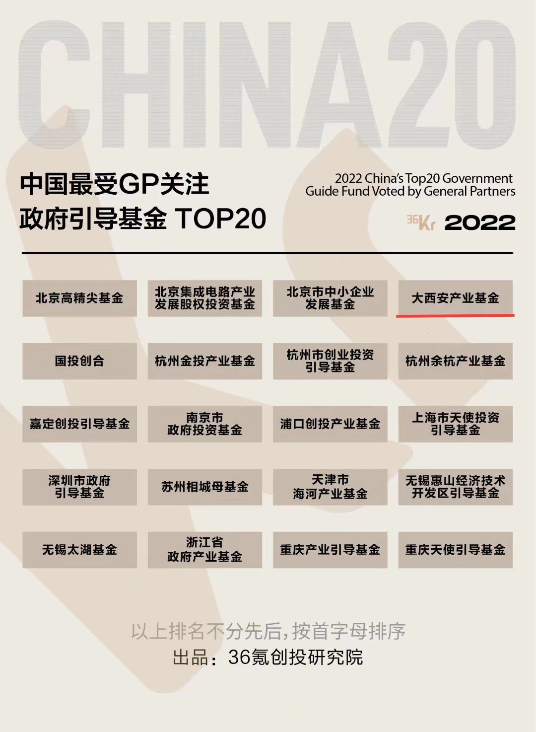喜報 || 大西安產(chǎn)業(yè)基金榮登36氪“最受GP關(guān)注LP”系列榜單